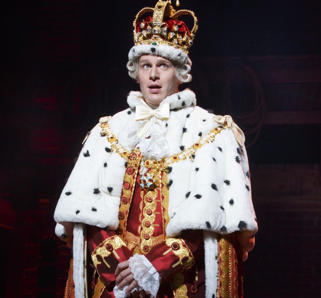 Ainda sobre o elenco, a menção honrosa vai para Jonathan Groff (Frozen, Glee, Midhunters) e suas divertidas aparições como o Rei George III. Assim como as canções de Eliza fogem propositadamente do rap para o pop, as canções do Rei George trazem um quê de Beatles para o musical (com um dadadadat dadatda dadadayada que gruda por horas em nossos ouvidos). Ele realmente é um intruso naquele universo e Jonathan leva isso às últimas consequências fazendo-o bem caricato, caminhando em linhas retas – como quem anda em cordas bambas – e lentamente – por conta o peso da coroa (literal e metaforicamente) sobre os ombros. Jonathan chega a cuspir de raiva e desprezo na parte da canção em que o Rei se dirige ameaçadoramente ao povo americano. É uma participação realmente incrível.